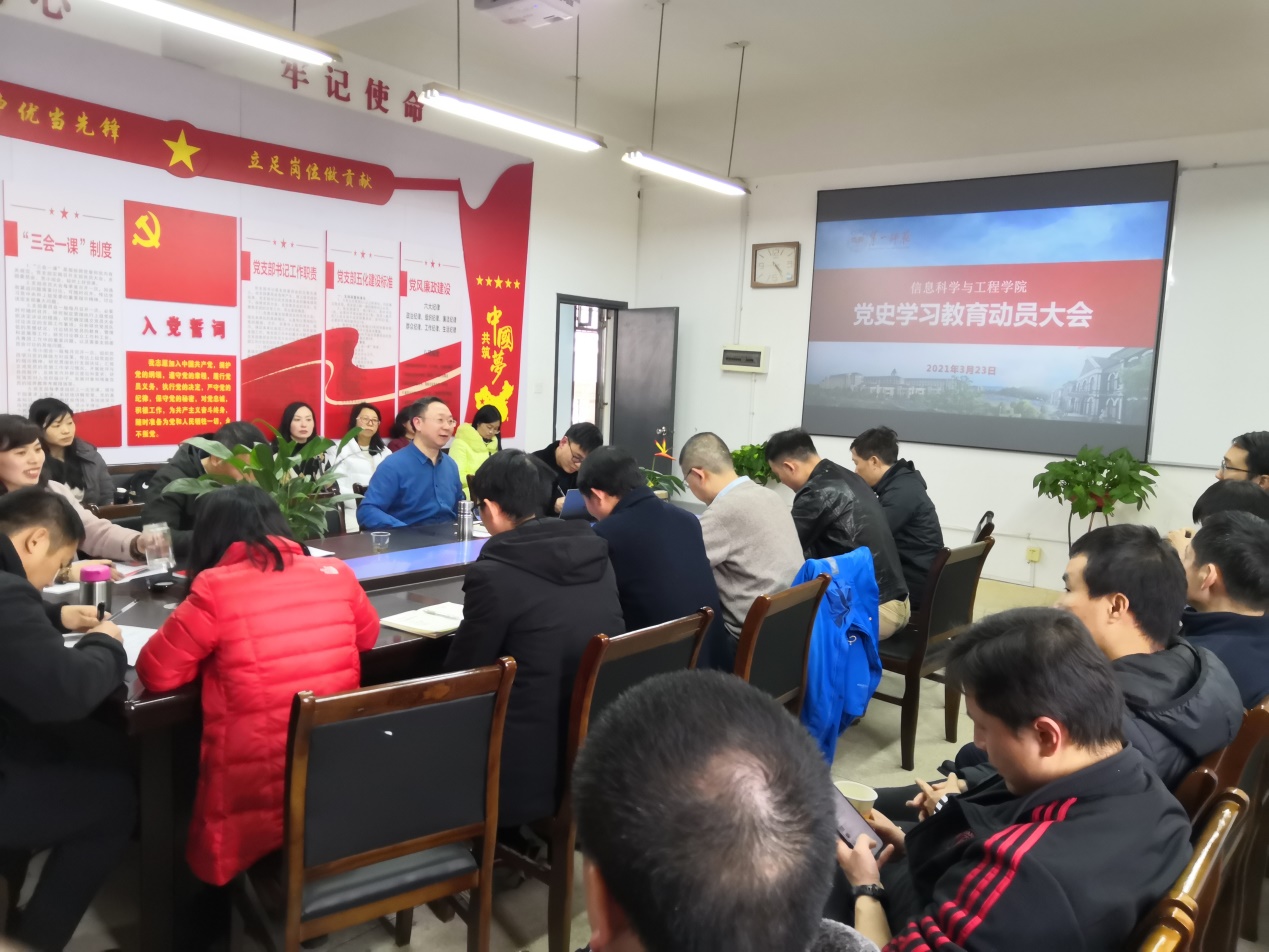 3月23日下午,必赢官网在玉衡北407召开党史学习教育动员大会,全体教职工党员参加。会议由党总支书记王杰文主持。