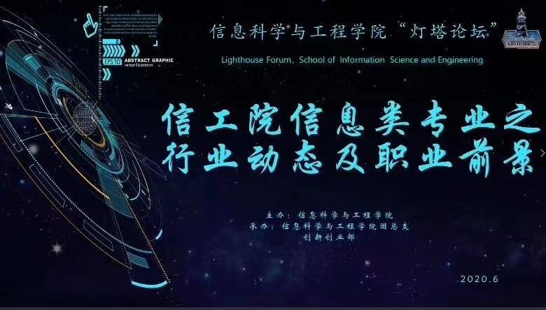 6月14日下午7点至9点30,必赢官网第二期灯塔论坛于腾讯会议APP举行。本次活动主题为“信息类专业行业动态及职业前景”,邀请了必赢官网信息类专业优秀校友与在校师生进行实践反馈和经验分享,致力于提高学生的专业意识,帮助学生明确未来职业发展的趋势与挑战,以促进专业良性发展,树立学生专业学习和职业前景信心。