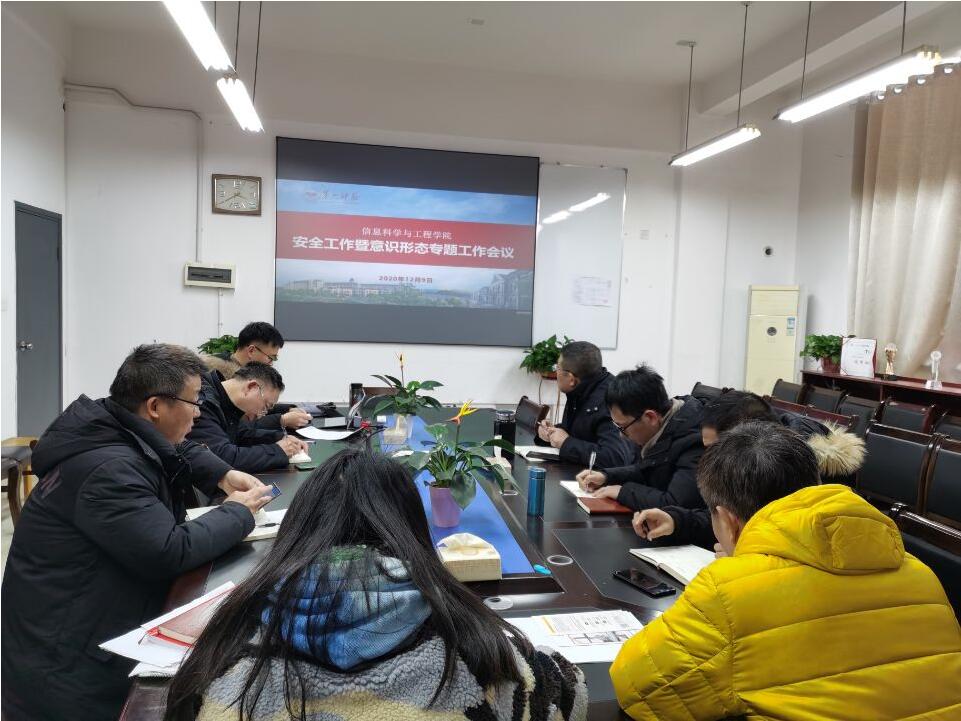 12月9日下午,必赢官网在会议室召开安全工作暨意识形态专题工作会议,学院领导、党总支委员、三办主任及专职辅导员参加。会议由党总支书记王杰文主持。