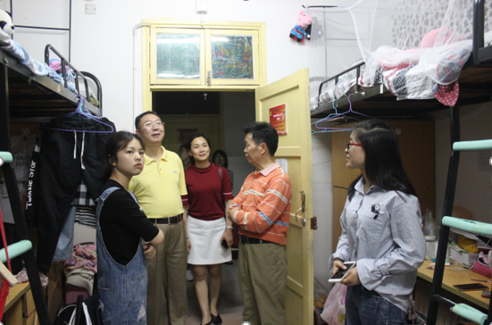 在学院毕业生宿舍内,李勇帆一行详细询问了同学们目前的工作就业状况和在校生活情况,认真解答毕业生们遇到的困惑,并与毕业生亲切交流今后的规划。李勇帆希望,毕业班级的同学要一如既往的保持良好的生活习惯,做好宿舍环境卫生保洁工作。离校期间要注意寝室财产安全,做文明离校的表率,以保证学生宿舍拥有较舒适的条件。