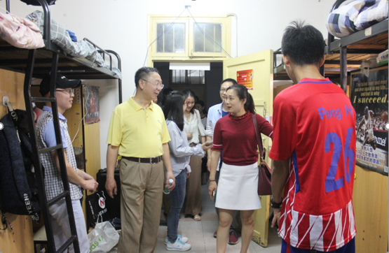 学生宿舍设施条件一直是学院领导关心的问题。下寝期间,学院领导一行重点察看了学生宿舍通风、纱窗、风扇等设施情况。王杰文指出,夏天温度比较高,各寝室务必要做好每日通风和登记工作,定期对寝室进行消毒。要注意寝室卫生,养成良好的卫生习惯,保持室内环境的干净整洁。
