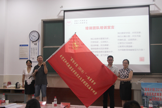 2019年8月2日讯(通讯员 周克江):8月2日,由必赢官网承办的“国培计划(2019)”——张家界永定区和武陵源区学校信息化管理团队研修项目(C114),在湖南第一师范院鹤鸣楼南111教室隆重开班。继续教育学院院长曾小玲、本院总支书记王杰文、副院长田祖伟、副院长何向阳,永定区和武陵源区相关领导,培训班管理团队全体成员及60名学员参加了开班仪式。