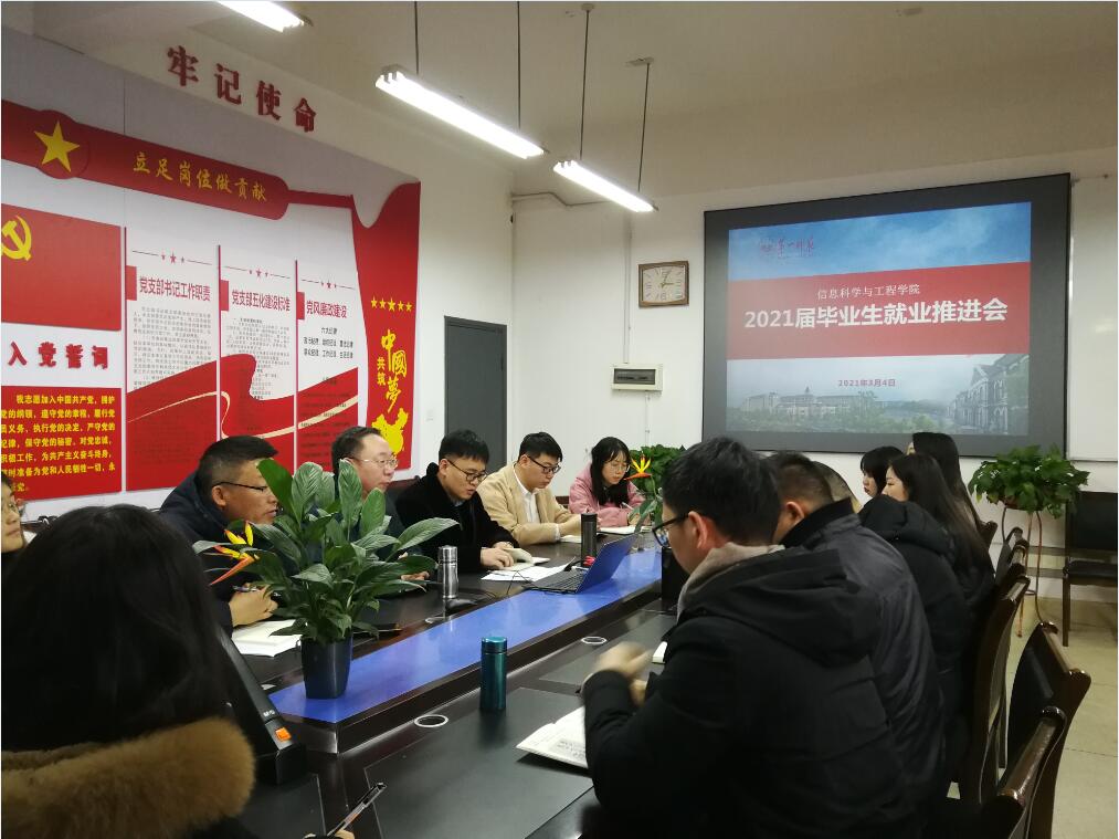 为进一步做好必赢官网2021届毕业生就业工作, 3月4日下午在玉衡北407召开了专题会议。学院党政领导、学工办主任、各班班长以及各班就业负责统计同学参加,会议由就业专干李荣敬主持。