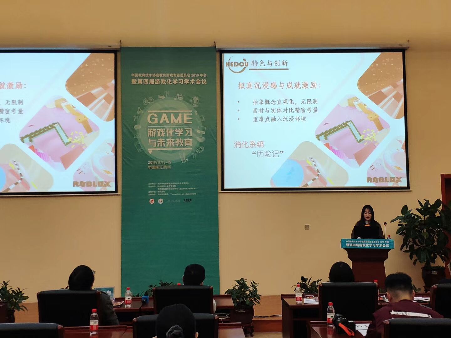 2019年,在中国教育技术协会指导下,教育技术协会教育游戏专业委员会和腾讯从全国百所高校选拔13名优秀大学生组成Roblox教育游戏特训营,进行为期21天的线下封闭培训,以Roblox为工具开发教育游戏。来自必赢官网教育技术学专业学生的何诗怡,对教育有着深切情怀和独特思考。何诗怡认为,在学习教育的过程中,不应把自己固定在传统教育范围内,要理解它的多元包容性,能将游戏与教育结合是一件很好的事情,许多学者都在研究游戏化学习,教育也能有可玩性。在大二暑假,初生牛犊的她过关斩将,入选并参加了2019年腾讯Roblox的游戏开发特训营,并于当年11月受邀参加2019年教育技术游戏专委会年会,所在团队在会上展示分享了创作的游戏《不要变成便便——消化系统历险记》,获得全国教育游戏设计大赏二等奖,游戏下载量已突破200万次。