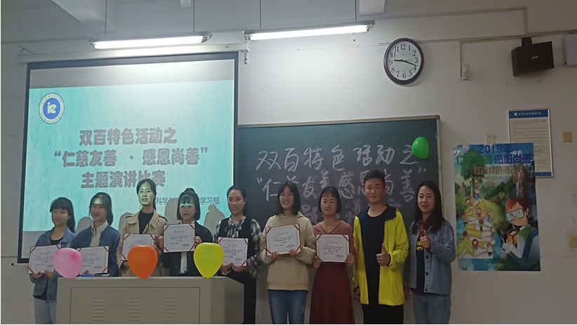 双百特色活动之“仁慈友善·感恩尚善”主题演讲比赛在热烈的掌声中圆满结束。本次演讲比赛不仅给同学们提供了一个展现自我、提升自我的平台,更增强了同学们对中华传统美德的理解,对优秀民族文化起到了积极地宣传作用,同时也促使同学们在新时代中全面发展、成长成才,争做中国特色社会主义的合格建设者和可靠接班人。