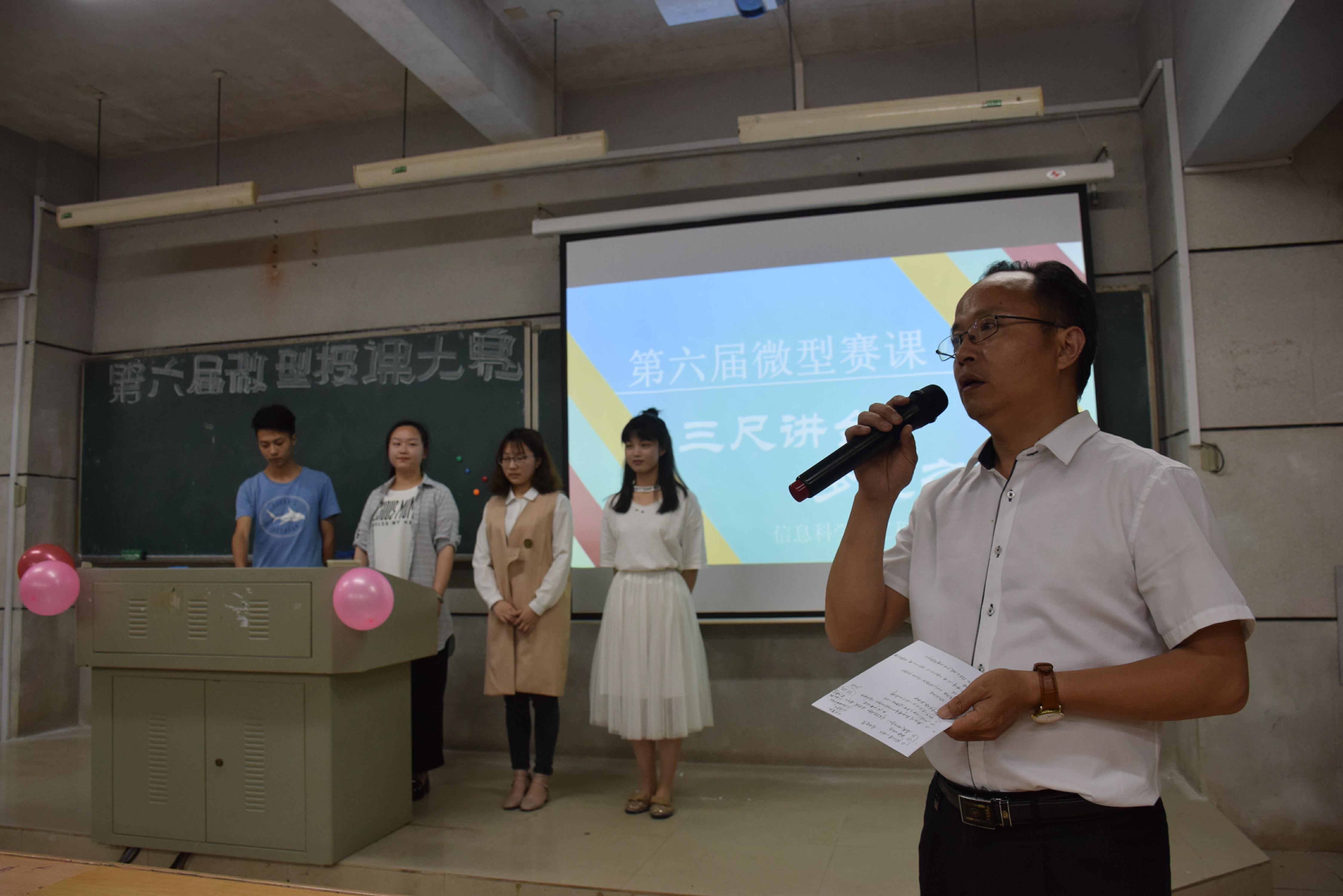 (通讯员 袁思思) 2017年5月9日晚,信息科学与工程学院“技术精英竞赛季”之第六届“三尺讲台 梦想之源”微型授课大赛决赛在理科楼举行。至此,经过动员准备、初赛选拔,学院2017年度的学生授课大赛圆满落幕。决赛特邀校教学督导团团长阳西述,及彭剑、张燕丽、周克江、刘琳等5位专业老师担任评委。学院党总支书记王杰文、副书记罗祥云、副院长田祖伟出席活动,全院200余名学生观摩大赛。