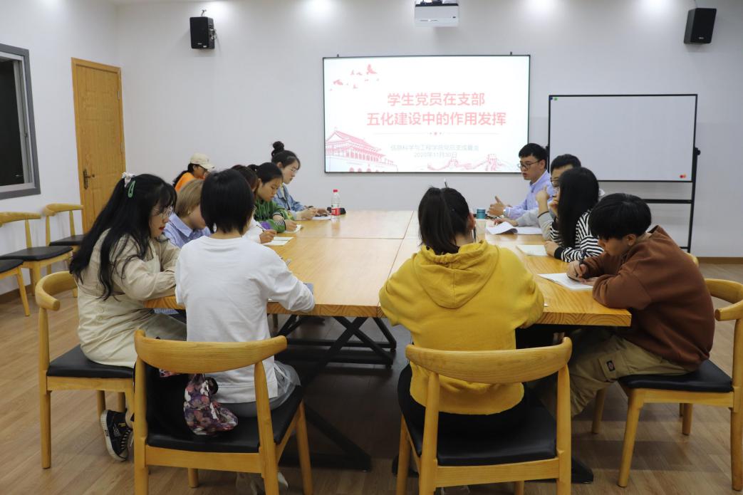 2020年12月1日,必赢官网党总支副书记成夏炎、学工第一党支部书记关红儒在图书馆研修室为学生党员讲授“学生党员在支部五化建设中的作用发挥”和“大学生党员的责任与担当”的主题党课。