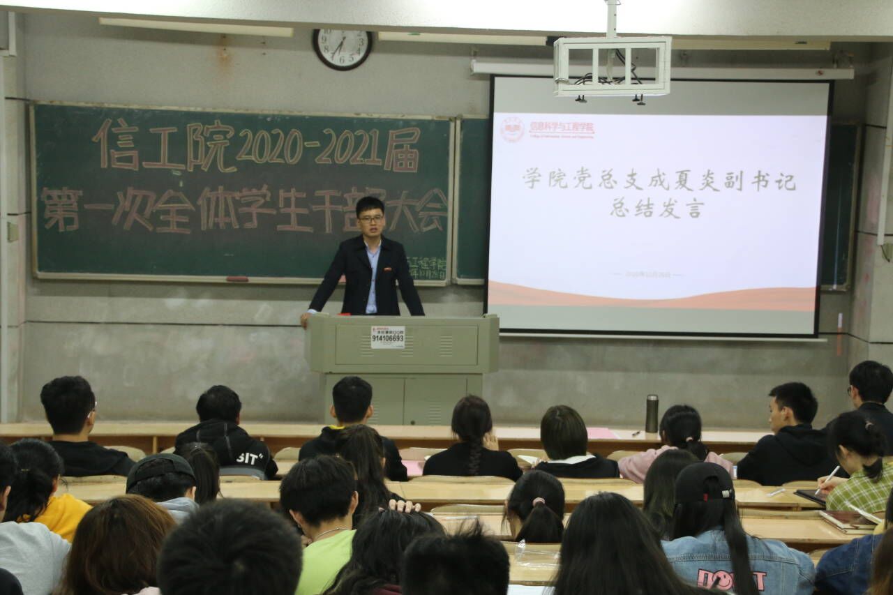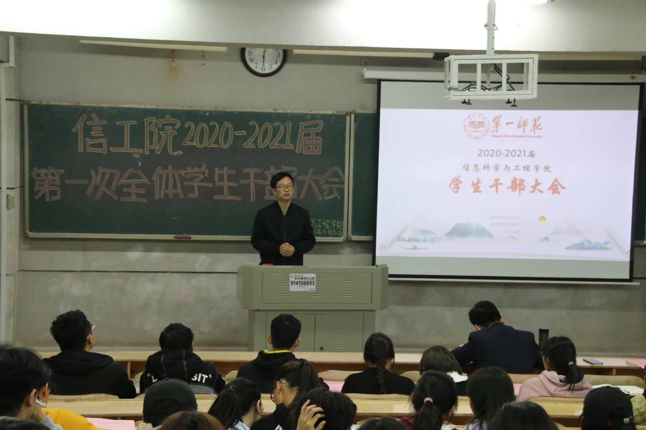 10月28日晚,必赢官网在润寰南101召开2020-2021届学生干部第一次全体会议,学院党总支副书记成夏炎、学工办主任关红儒出席,会议由团总支学生副书记张玉鑫主持。