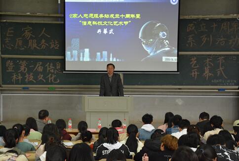 在激情昂扬的国歌奏唱中,开幕式正式拉开序幕。会上,易利老师回顾了E家人志愿服务站十周年历程,宣读了学院2019年“信息科技文化艺术节”工程整体工作方案,引导学生积极参赛、备赛、竞赛,并鼓励广大同学勇于创新,强化科技理念,共同努力全面推动优良院风建设。