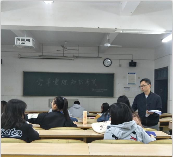 会议伊始,全体起立,奏唱《国际歌》。随后,由关红儒老师组织大家学习了《中国共产党纪律处分条例》及习近平总书记9月10日在全国教育大会上的重要讲话。接着,观看学习了《社会主义有点潮》视频。观看视频结束后,在关红儒老师的组织下,各位党员有序的进行了党章党规的考试。大会最后由党总支副书记易利老师进行总结致辞,和大家分享了“两学一做”的学习经验和方法,并对学生党员的学习和工作提出具体的要求。