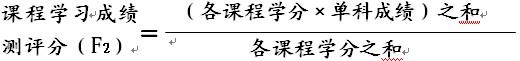 第十四条 学业成绩用F2表示,为纳入测评的各门必修课、限选课的学分与各科目单科成绩的乘积之和,再除以各课程学分之和,其计算公式为: