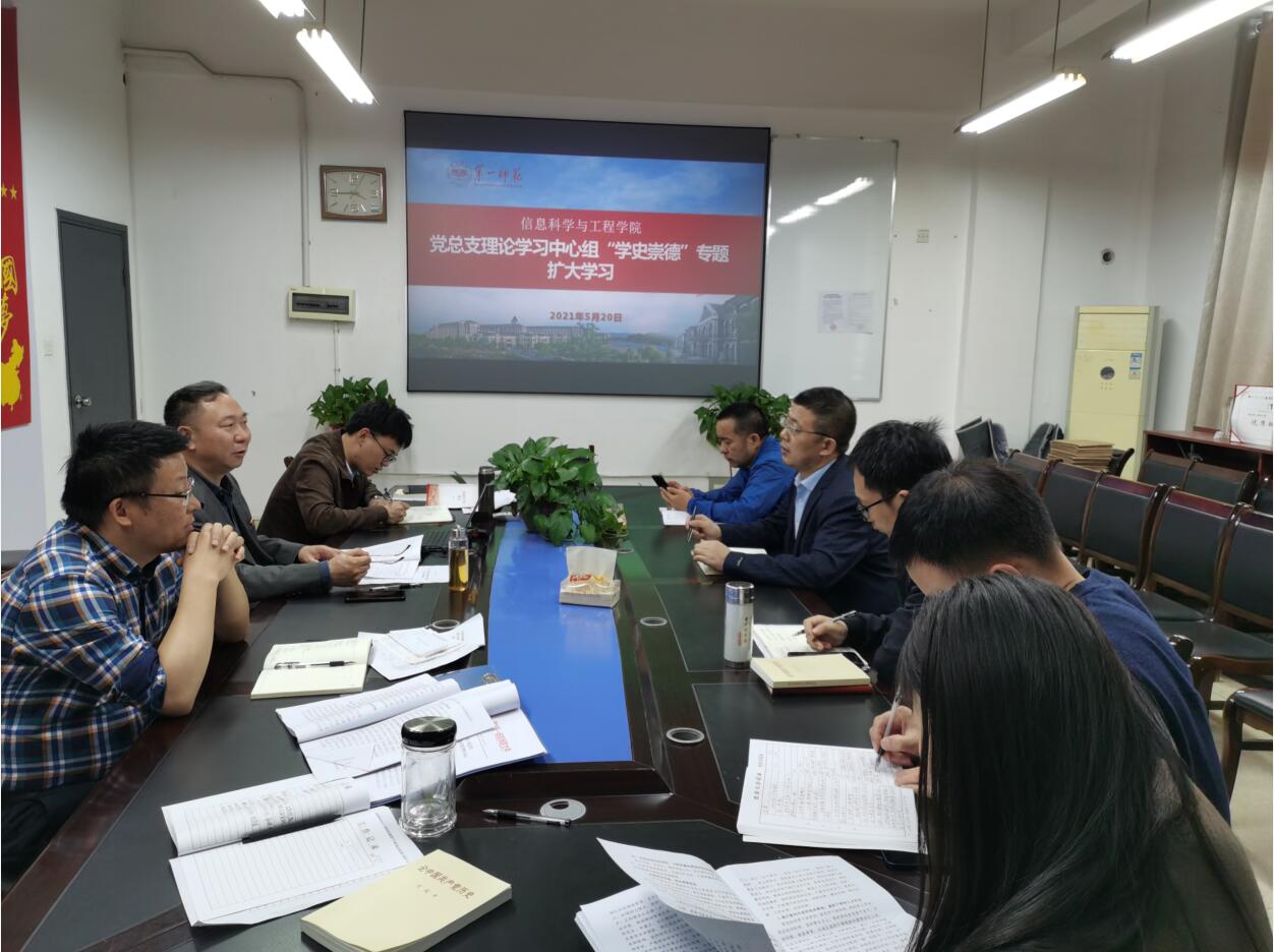 5月20日下午,学院党总支理论学习中心组在玉衡北407开展“学史崇德”专题扩大学习活动。学院领导、党总支委员及必赢官网学校第二次党代会代表参加。活动由党总支书记王杰文主持。