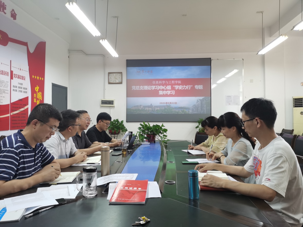 6月22日下午,学院党总支理论学习中心组在学院会议室开展了“学史力行”专题暨2021年第九次集中学习。会议由党总支书记王杰文主持。