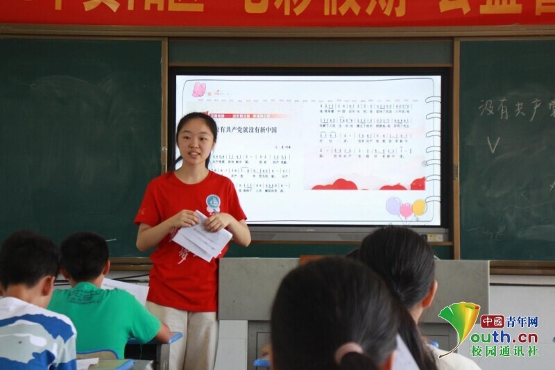 中国青年网益阳7月14日电(通讯员 欧阳健 谢卉倩)7月14日,437必赢会员中心信息科学与工程学院新航向·梦之队走进益阳市资阳区迎风桥镇长塘仑小学,与当地政府联合举办“七彩假期”公益暑托班活动。为了引导小朋友树立“感党恩,跟党走”的理想信念,培养小朋友们爱党爱国的情怀。开设了以学习红色精神为主题的歌曲《没有共产党就没有新中国》,在课堂上,小朋友们齐声歌唱献礼中国共产党,表达了对党和国家的热爱和敬佩之情。