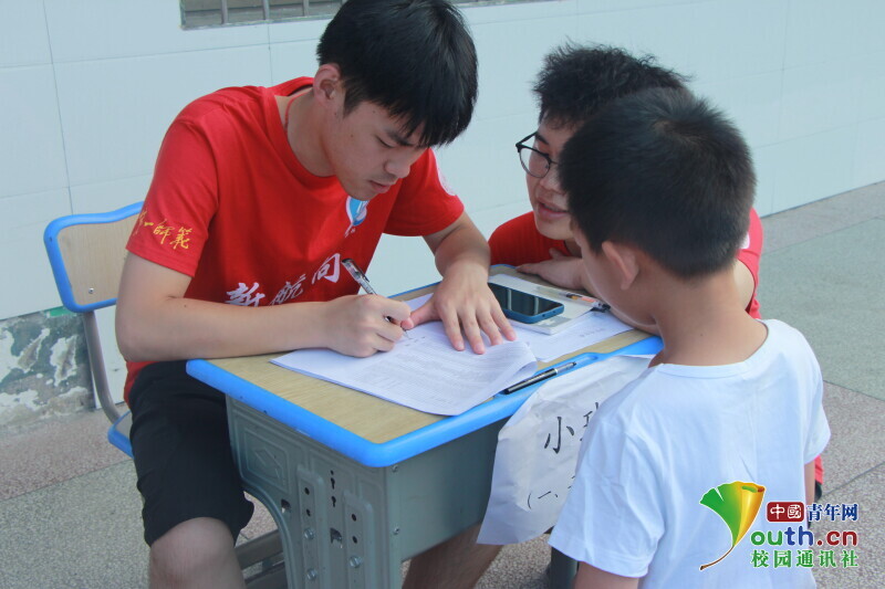 图为志愿者老师在开班报到时询问记录学生的家庭信息。中国青年网通讯员 段新利 摄