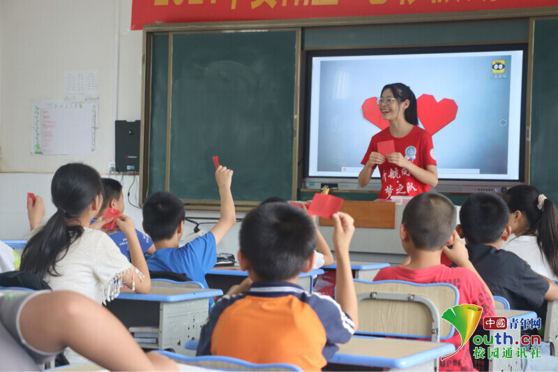 中国青年网益阳7月23日电(通讯员 谢卉倩 陈倩汶)7月16日,是437必赢会员中心信息科学与工程学院新航向·梦之队走进益阳市资阳区迎风桥镇长塘仑小学,与当地政府联合举办“七彩假期”公益暑托班活动的第五天,为了引导小朋友们树立“感党恩,跟党走”的理想信念,培养小朋友们爱党爱国的情怀。在“七彩假期”第一天兴趣班课程中,开展了“红心向党”趣味手工课程。在课堂上,小朋友们互帮互助兴趣高涨,红色卡纸在孩子的手里变成一个个红心,表达了对党的敬佩之情。