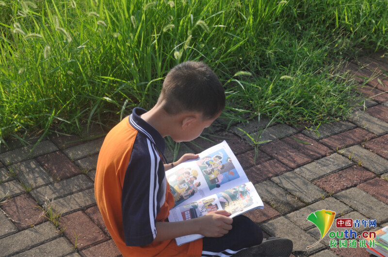 图为孩子有一个作家梦,正在专心致志地阅读新航向·梦之队带来的绘本读物。中国青年网通讯员 马唯一 摄