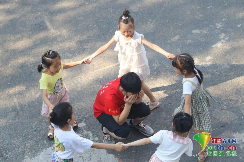 图为课间志愿者和孩子们一起玩游戏。中国青年网通讯员 段新利 供图