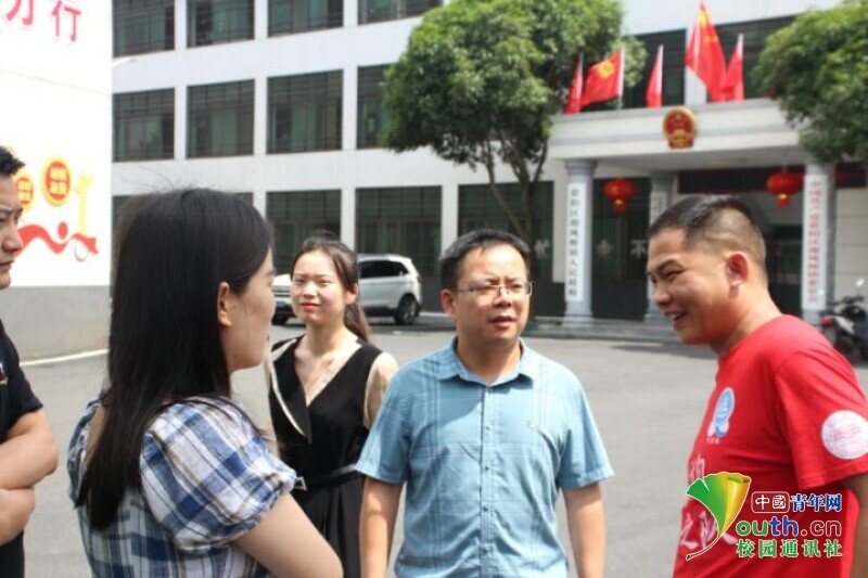 图为新航向梦之队队员们与资阳区镇府以及长塘仑小学的领导们会面交谈。中国青年网通讯员 欧阳健 摄
