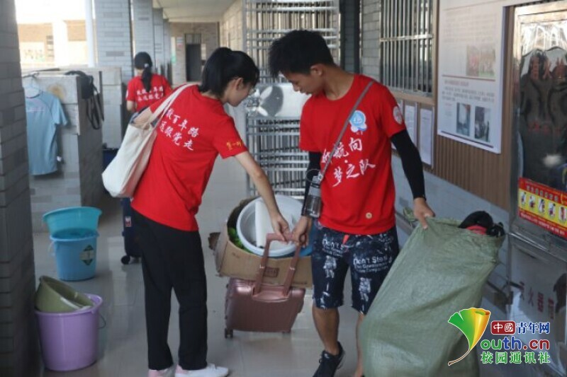 图为志愿者为明日开班仪式迎接孩子打扫卫生。中国青年网通讯员 段新利 摄