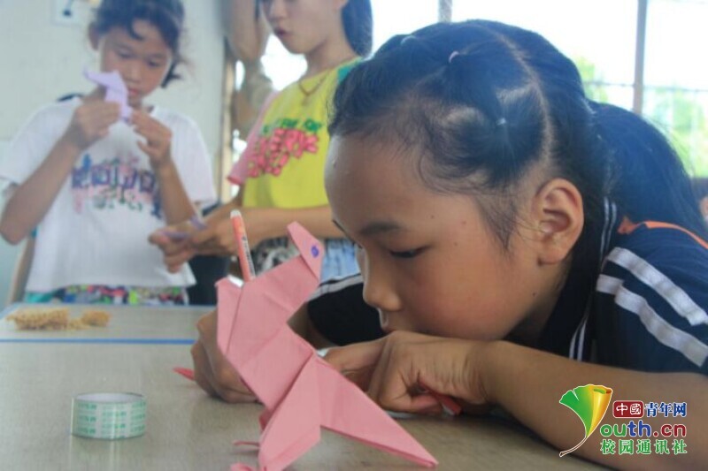 图为手工折纸课上,老师手把手教孩子如何折纸,孩子们全神贯注地听着。中国青年网通讯员 马唯一 摄