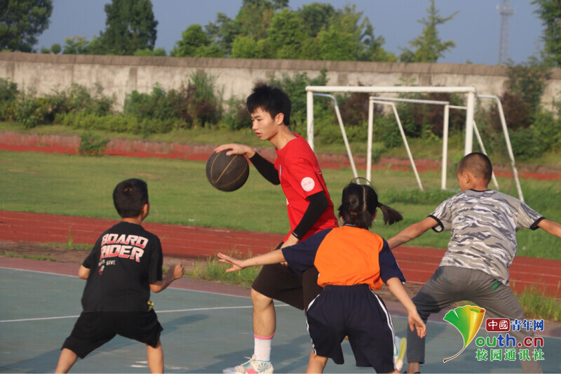 图为学生们组队与老师在篮球场上PK,挥洒汗水,度过美好课间时光。中国青年网通讯员 马唯一 摄