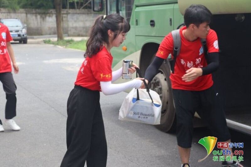 图为队员接力搬运行李和物资。中国青年网通讯员 何星逸 摄