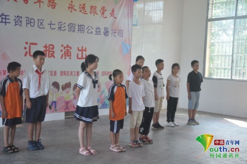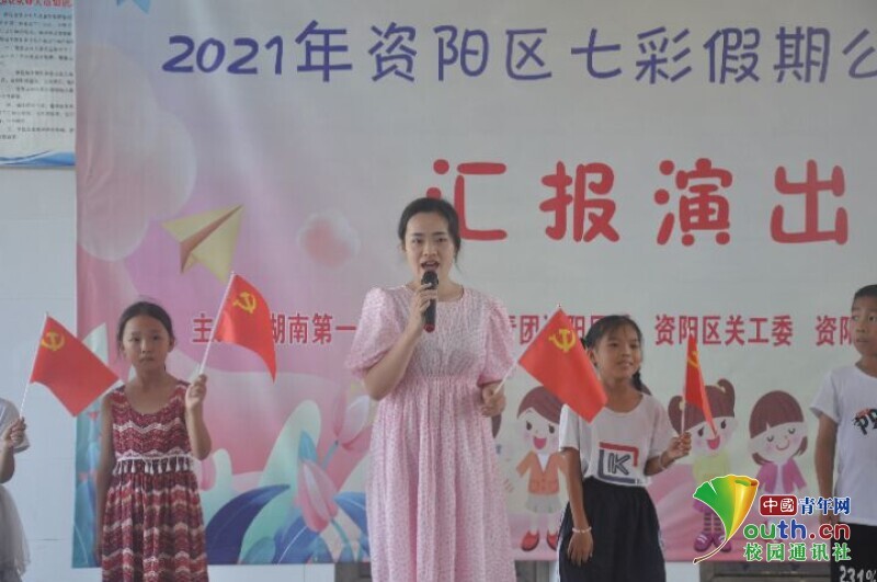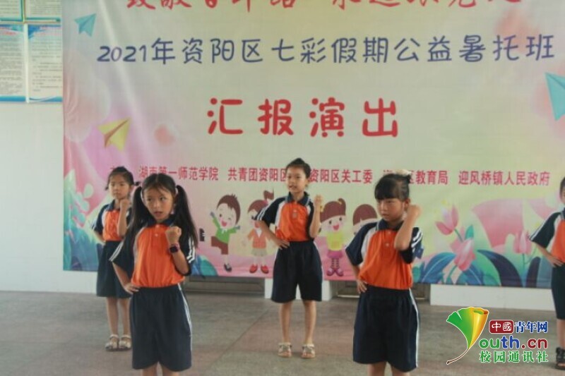 中国青年网益阳8月11日电(通讯员 黄波 张航行)为展示437必赢会员中心信息科学与工程学院新航向·梦之队赴迎风桥镇乡村振兴实践团到益阳市资阳区迎风桥镇长塘仑小学暑期“三下乡”社会实践成果,志愿者开展以“致敬百年路,永远跟党走”为主题的艺文汇演活动。7月24日,全体学生以及队员做好充分表演准备,在上午九点准时开展文艺汇演活动。队员们用一场精彩纷呈的文艺汇演为此次长达半个月的支教画上了圆满的句号。