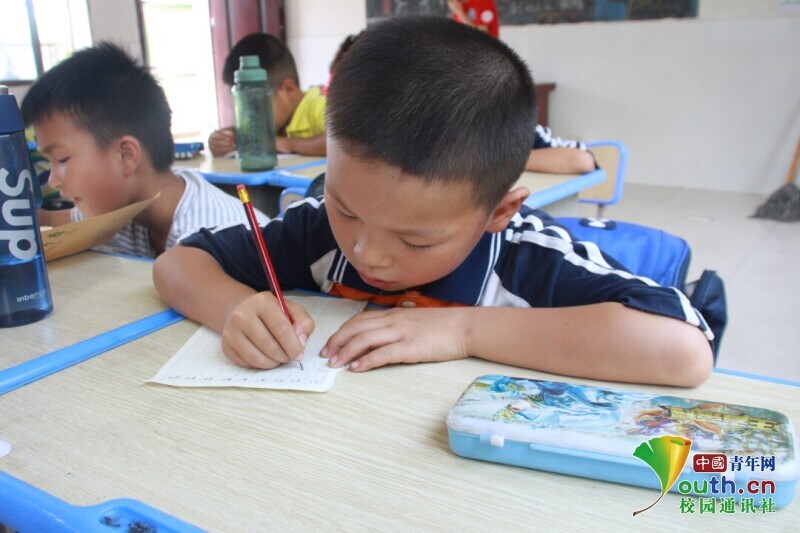 “用心教学,用爱陪伴”,志愿者尽其所能传授孩子们知识,陪伴孩子们度过一个七彩暑假。时刻在线的镜头捕捉到了许多老师和孩子们认真写字的画面,他们一笔一捺写字的样子最可爱。