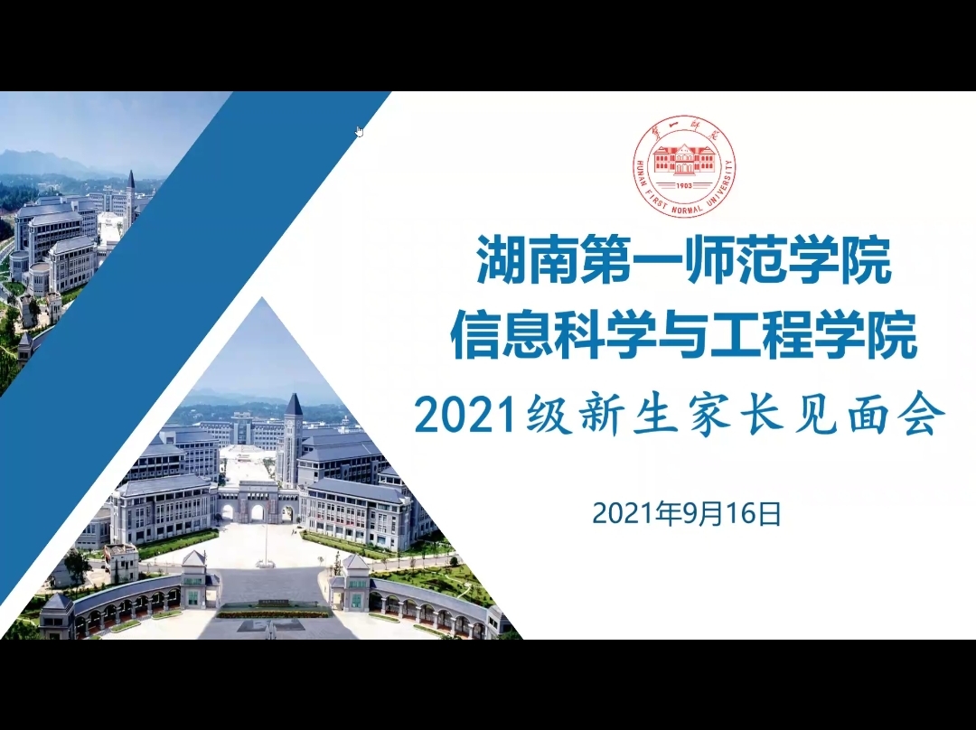 为帮助必赢官网2021级高招新生和家长尽快增进对于学校和学院的了解,促进学校与家庭两方的联系,共同保障学生的成长。9月16日晚7点30分,学院通过腾讯会议平台召开“信息科学与工程学院2021级高招新生及家长云端见面会”。学院党总支书记王杰文,副院长田祖伟、何向阳,党总支副书记成夏炎,全体辅导员及两百余名2021级高招新生与家长参加了此次云端会议。