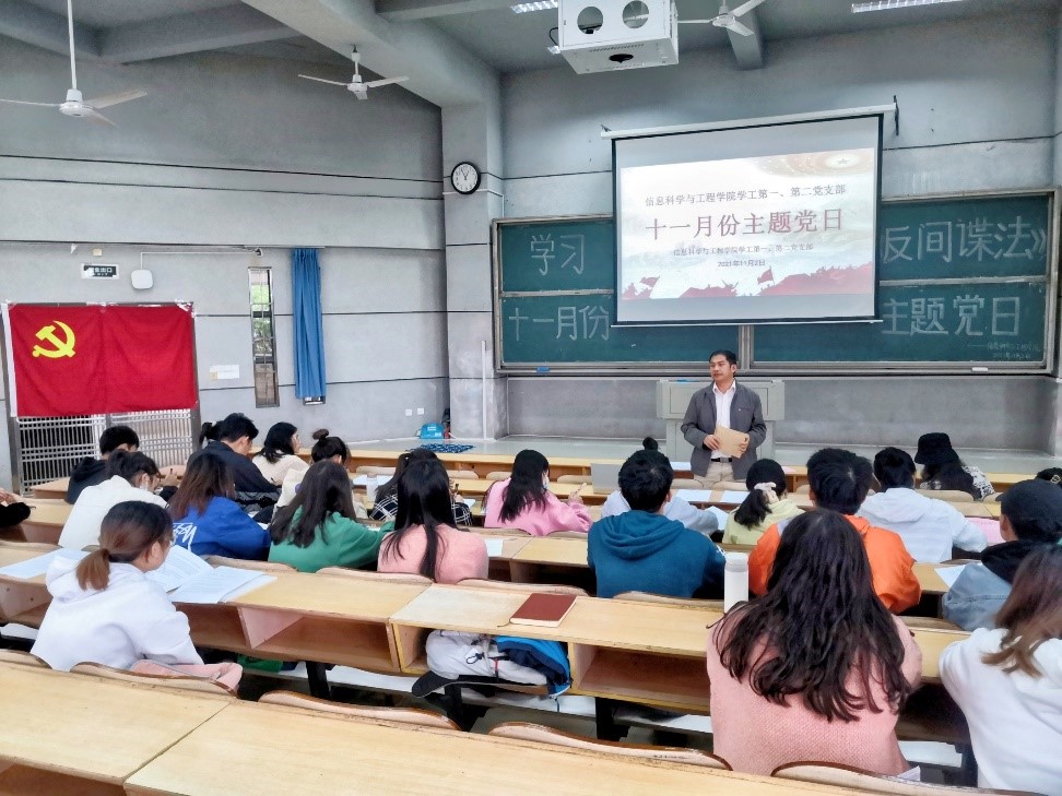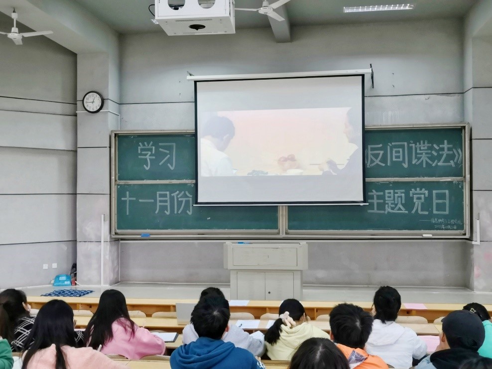 2021年11月2日,必赢官网学工第一、第二党支部开展了“学习反间谍法”主题党日活动,学工第二党支部书记李荣敬老师,学工办叶晶老师和全体学生党员共同学习了《国家安全部有关负责人就<反间谍安全防范工作规定>答记者问》文件并观看了《微信陷阱》、《守护国家安全:请记住这个号码,12339》视频。此次主题党日旨在积极响应反间谍法颁布实施七周年纪念日,促使党员们在此次学习中认识到反间谍法是我国国家安全法律制度体系的重要组成部分,更加明确反间谍的必要性和国家安全的重要性。