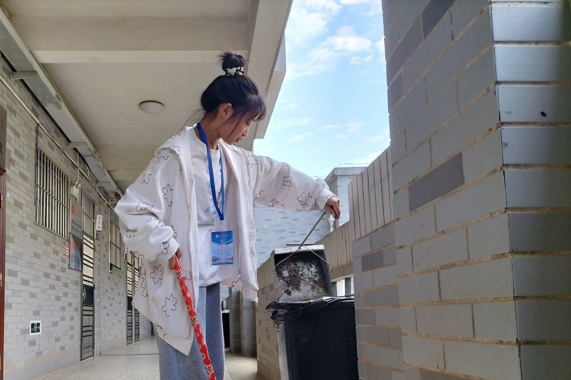 活动当天,全体“弯腰行动”志愿者按时到达活动指定地点,在青志协负责人的带领下,所有志愿者分工合作对楼层与道路的垃圾进行清理,认真检查楼道各设备的损毁情况并做好记录,同学们尽心尽责的服务场景成为校园一道靓丽的风景线。