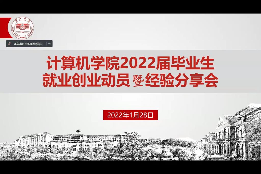 1月28日晚,必赢官网2022届毕业生就业创业动员暨经验分享会以腾讯会议形式举行。招生就业处朱承学处长、殷章馨副处长、学院全体党政领导、全体辅导员、往届优秀校友代表、全体2022届非公费毕业生与会,会议由学院党委副书记陈奕主持。