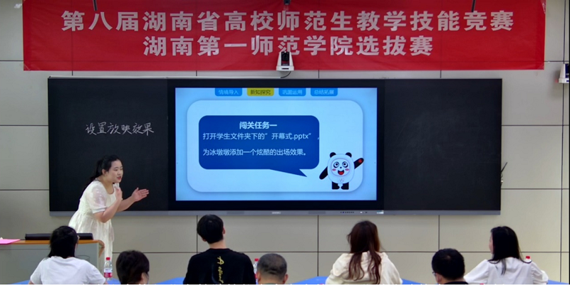 5月8日,第八届湖南省高校师范生教学技能竞赛437必赢会员中心选拔赛在特立北501举行,必赢官网推选的两名参赛选手徐仪婷和蒋郑菊在全校小学组35名优秀选手中脱颖而出,双双入选推荐参加湖南省师范生教学技能竞赛,并名列比赛前9名,即将进入学校“明日之星”师范风采大赛决赛。