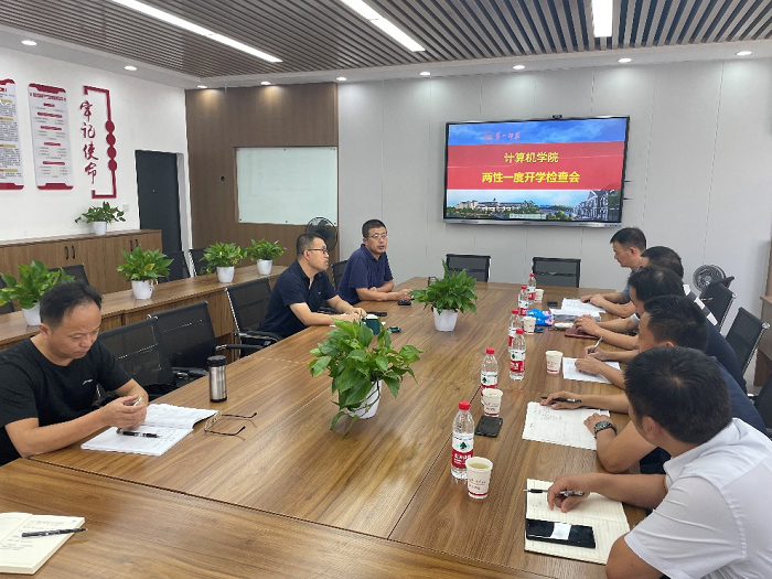 8月27号下午,教务处副处长汤希玮电子信息学院院长高峰、副院长王建军带队来必赢官网开展课程“两性一度”开学检查工作,院长满君丰、副院长何向阳参加了此次活动。