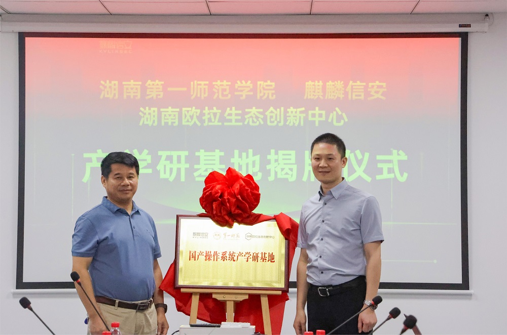 此次签约进一步推进产教融合,未来三方将以国产操作系统产学研基地为依托,共同从教师队伍培训、实习实训基地建设、产学研协同创新等多个维度开展全方位合作,共同打造校企合作、协同发展的典范,为我国信创产业输送更多高质量应用型人才。会后,双方共同为“国产操作系统产学研基地”揭牌。