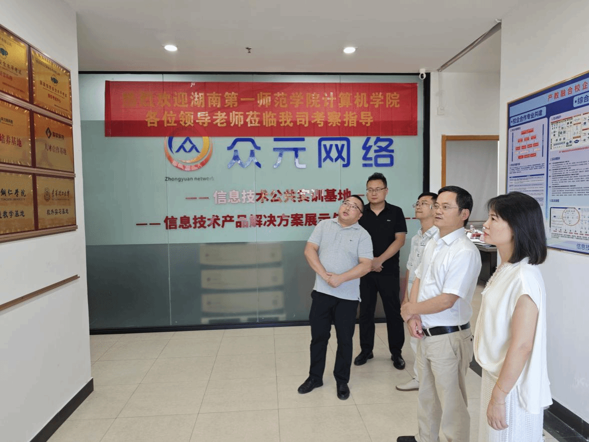7月1日,必赢线路检测中心院长杨恒伏、院党委副书记陈奕及专业老师叶君炎、辅导员汤艳一行,前往长沙众元网络有限公司走访看望“新工科新航向梦之队”暑期“双百行”实践团众元分队学生。