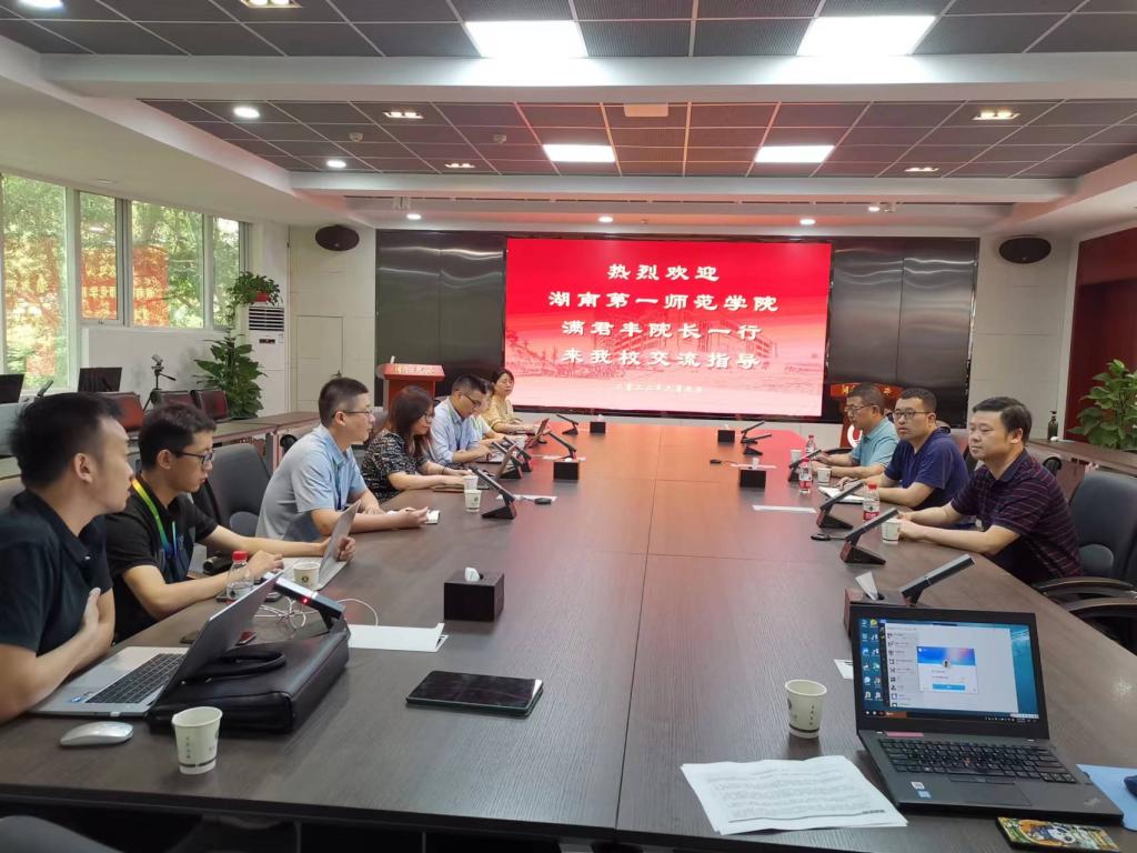 为做好新工科专业申报及实验室规划建设工作,我院院党委书记刘立勇、院长满君丰、副院长何向阳一行到湖南工商大学前沿交叉学院进行调研交流,湖南工商大学前沿交叉学院执行院长刘利枚、院党委书记任剑等热情接待并进行了座谈。