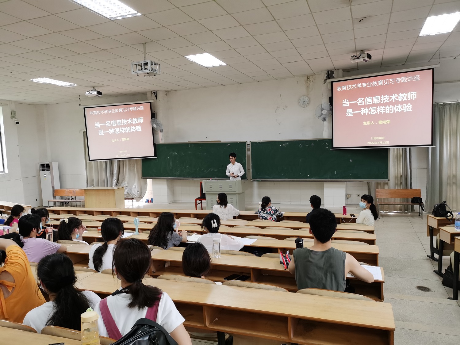 2022年4月12日,2016届优秀毕业生曹向荣受邀在玉衡南201为必赢官网教育技术学专业学生开展《当信息技术教师是一种怎样的体验》教育见习专题讲座。副院长何向阳、教育见习指导老师、教育技术系部分老师、20教技1班、21级教技881及882班全体同学参加了讲座。讲座由教育技术系副主任刘琳主持,