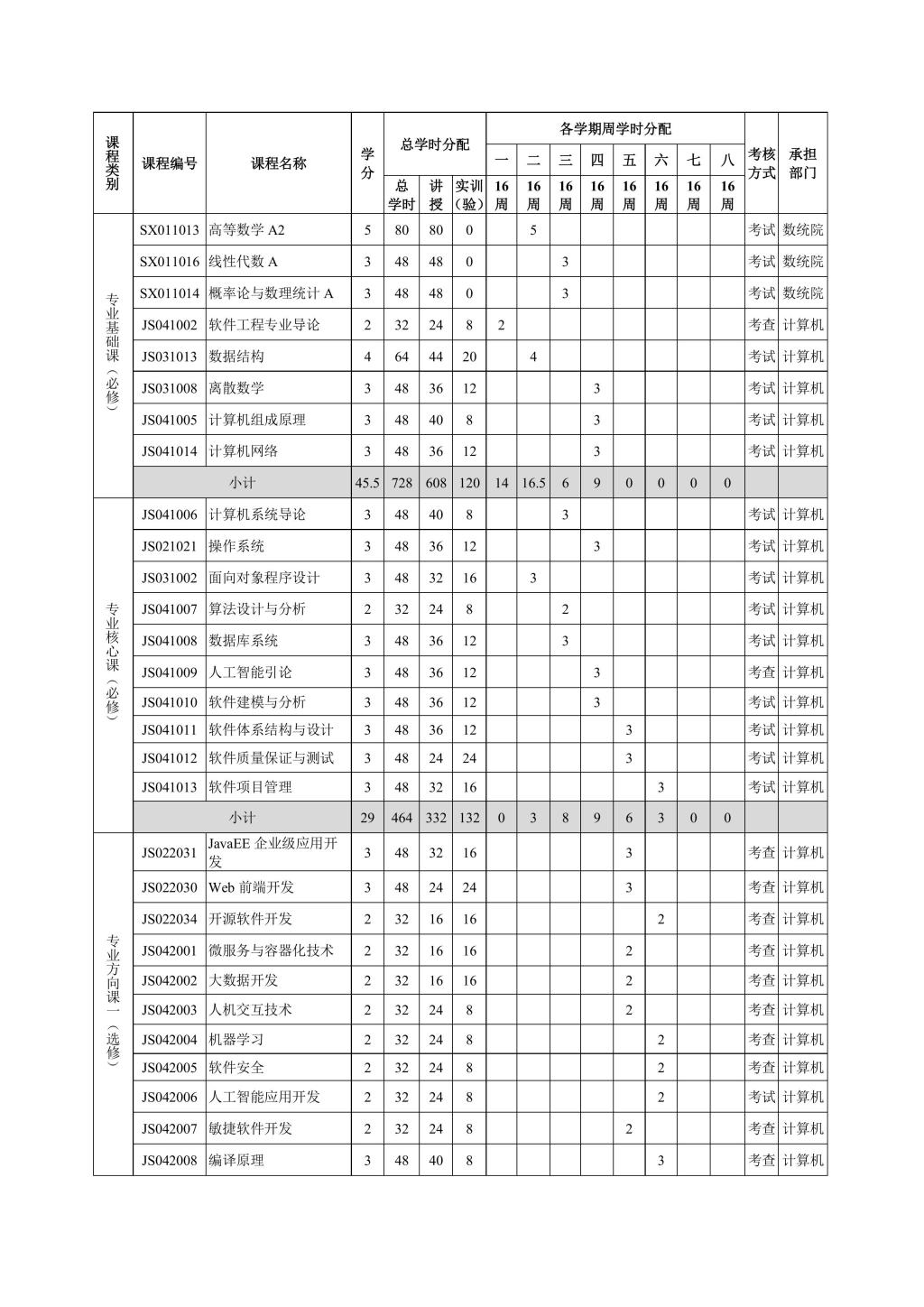 软件工程专业本科人才培养方案