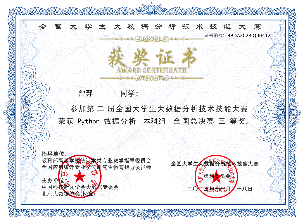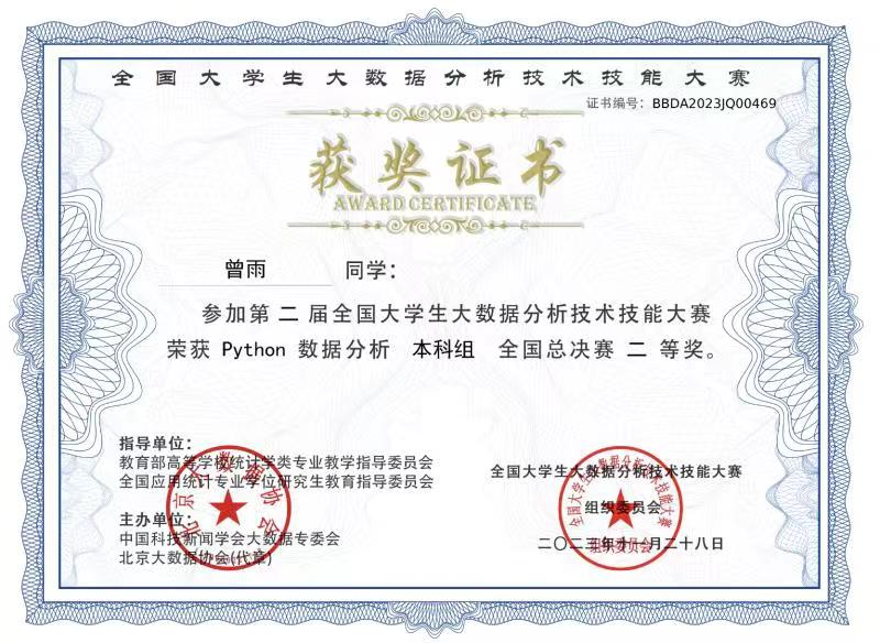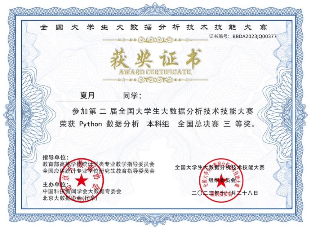 近日,第二届全国大学生大数据分析技术技能大赛全国总决赛圆满落幕,我校必赢线路检测中心学子在全国总决赛中喜获一、二、三等奖共七项奖项