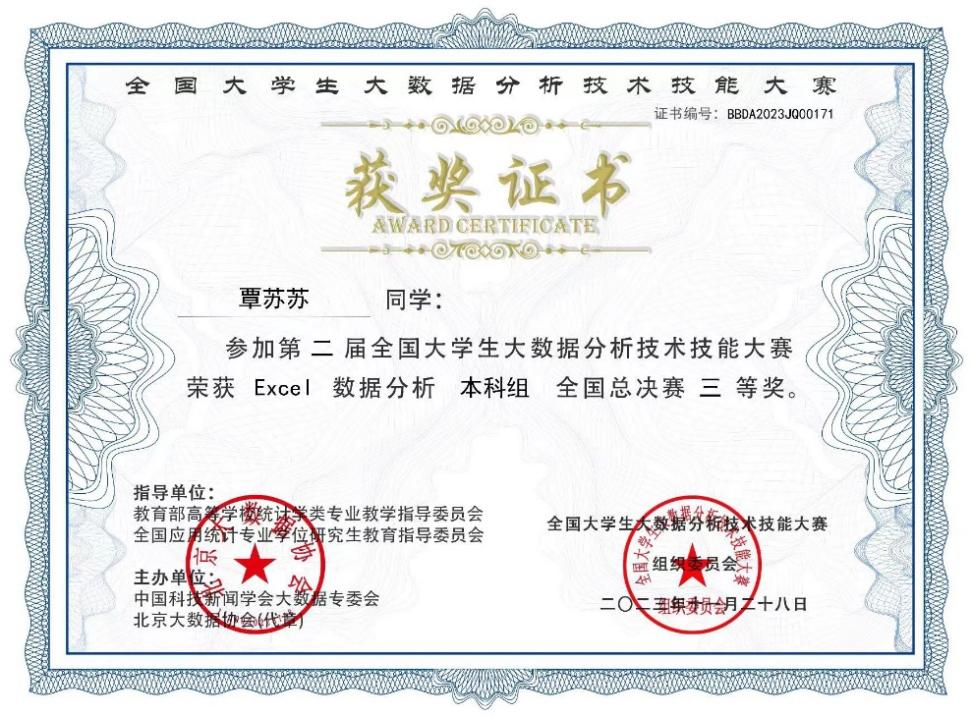 必赢官网学生喜获第二届全国大学生大数据分析技术技能大赛全国总决赛一等奖
