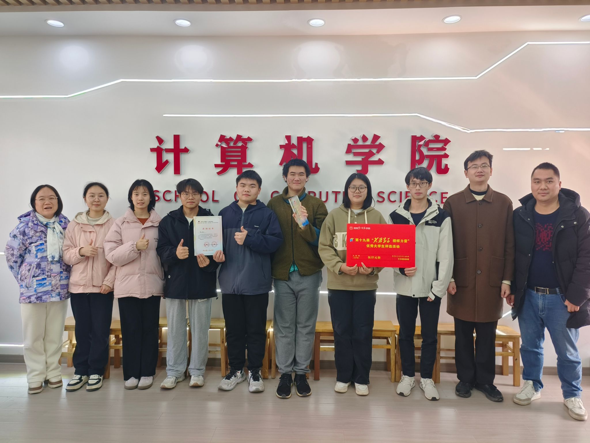 必赢官网智汇团队凭借在专业竞赛中的突出表现,荣获校第十九届“芙蓉学子·榜样力量”学术创新奖。该奖项充分肯定了团队成员在学术创新与实践探索中的卓越成绩。智汇团队由跨年级的8名成员组成,包括21级计科3班张任也,22级计科4班覃苏苏、夏月、熊涛、曾雨、梁欣如,22级计科5班蔡宇,以及23级计科1班刘坤浩。团队在唐德燕、周聪两位教师的专业指导下,通过持续协作与创新突破,在学科竞赛领域取得了显著成效。