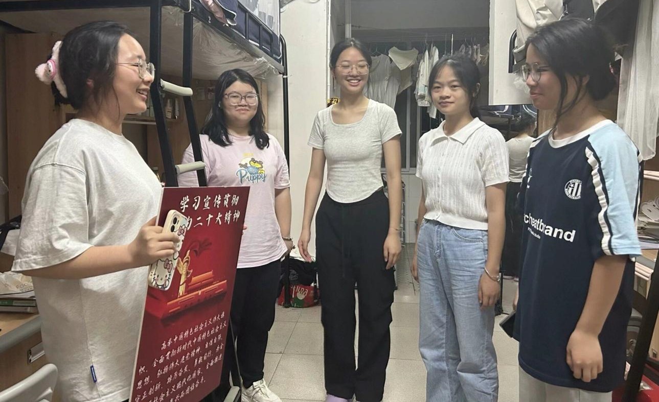 红旗引领航向明,党员深解政策情。在寝室温馨氛围中,党员发展对象们详细解读了习近平总书记来我校考察时的讲话精神,阐述了中国特色社会主义文化的深厚底蕴,讲解了二十大精神的时代要义。思政小课堂不仅加深了同学们对党和国家大政方针的理解,更激发了大家积极投身学习实践的热情。作为新时代新青年,要认真学习习近平新时代中国特色社会主义思想,用思想之旗引领航向,秉持初心,勤奋学习,当好学院建设的主力军。