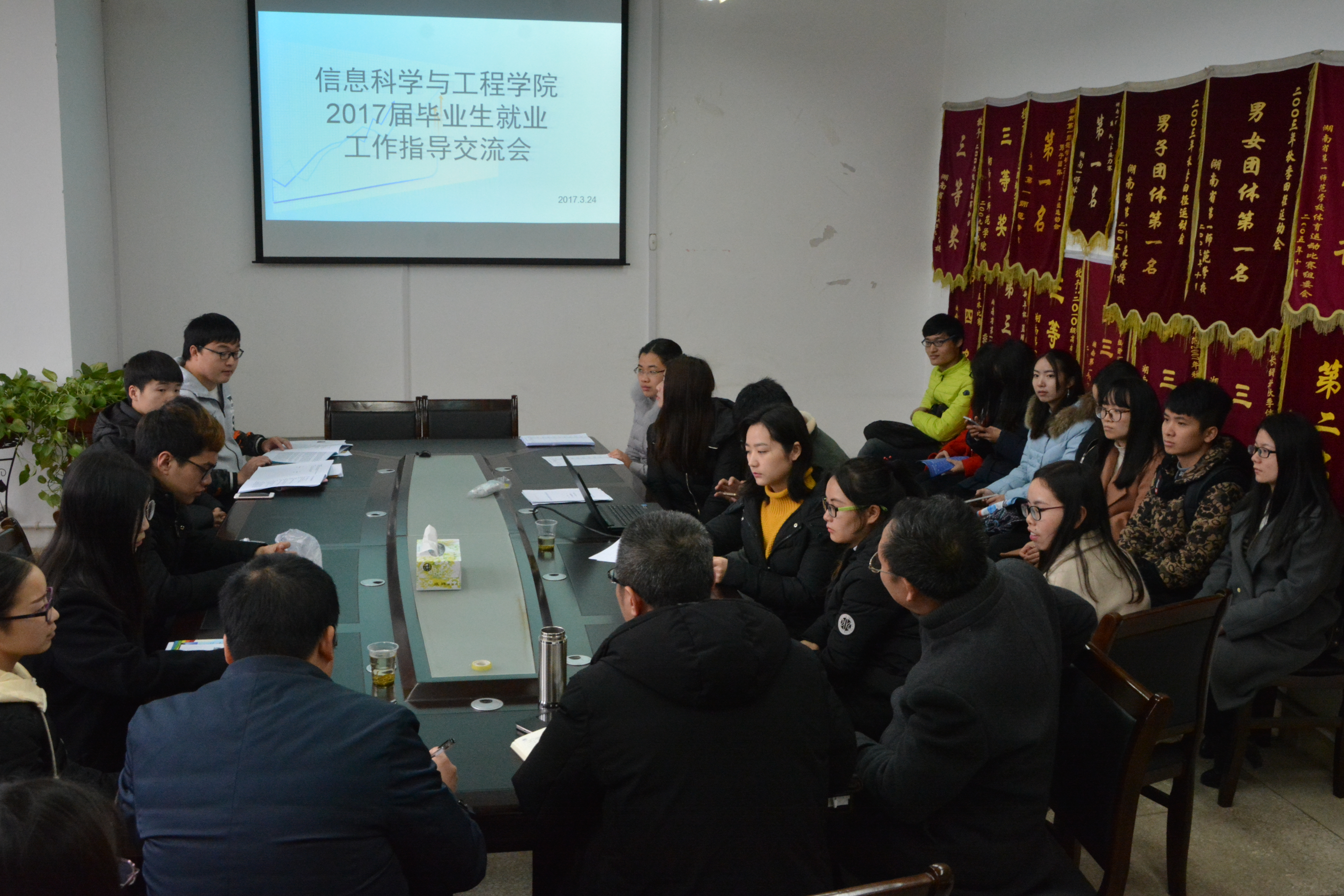 为进一步掌握应届毕业生当前就业实际情况,指导帮助暂未落实工作毕业生转变观念、科学择业,3月24日,必赢官网组织召开2017届毕业生就业工作指导交流会,院党总支书记王杰文、副书记罗祥云、副院长田祖伟出席会议,学工办老师及毕业生代表30余人参加了交流会。
