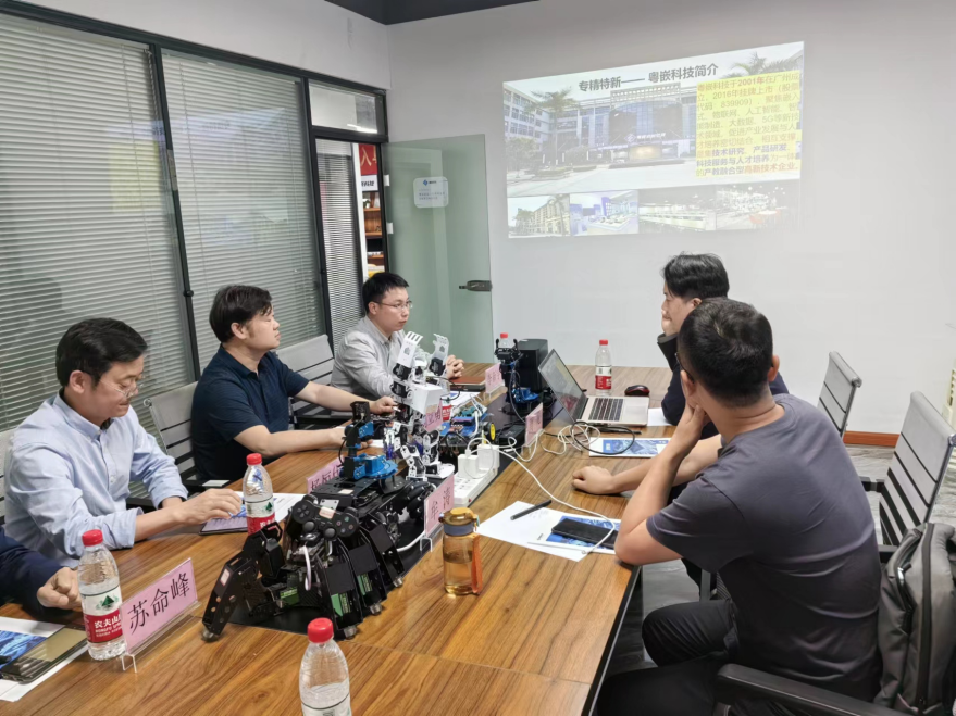 在广州粤嵌通信科技股份有限公司,刘立勇、杨恒伏一行参观了企业展示中心,详细了解了粤嵌科技的发展历程、业务布局、技术创新成果,以及粤嵌科技智能制造的创新建设等。座谈会上,双方就校企合作展开了交流。周龙指出,校企合作是双方协同发展的重要一环,期待双方通过优势互补,在课程建设、智能应用人才培养、科研项目合作等方面展开深入交流,希望与学院在人才培养和科研合作方面实现共赢。杨恒伏从学科建设、师资队伍、人才培养、办学特色等方面介绍了学校的发展情况。指出,学院将以此次访企为契机,继续深化与企业的合作关系,推动校企合作向更高层次、更广领域发展。同时,学院也将根据企业的反馈和建议,不断优化课程设置和教学模式,提高人才培养质量,为社会培养更多优秀的专业人才。